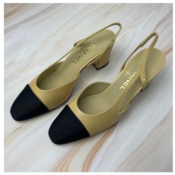 샤넬 클래식 베이지 투톤 슬링백 미드힐 G31318