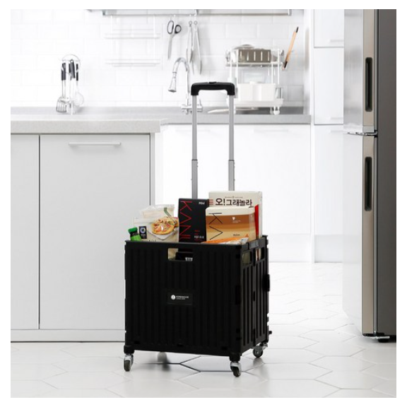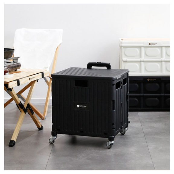 홈앤하우스 4바퀴 접이식 핸드카트 65L + 뚜껑 세트, 블랙, 1개 > 홈 인테리어