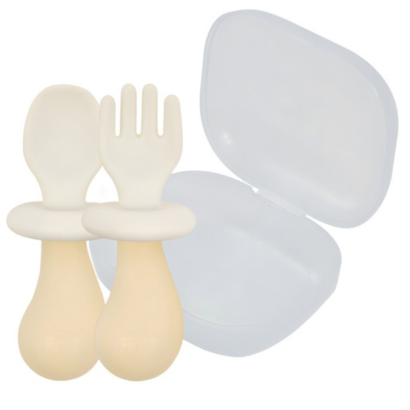 퍼기 유아용 버섯 자기주도 실리콘 이유식스푼포크, 베이지, 1세트 > 유아/완구