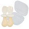 퍼기 유아용 버섯 자기주도 실리콘 이유식스푼포크, 베이지, 1세트